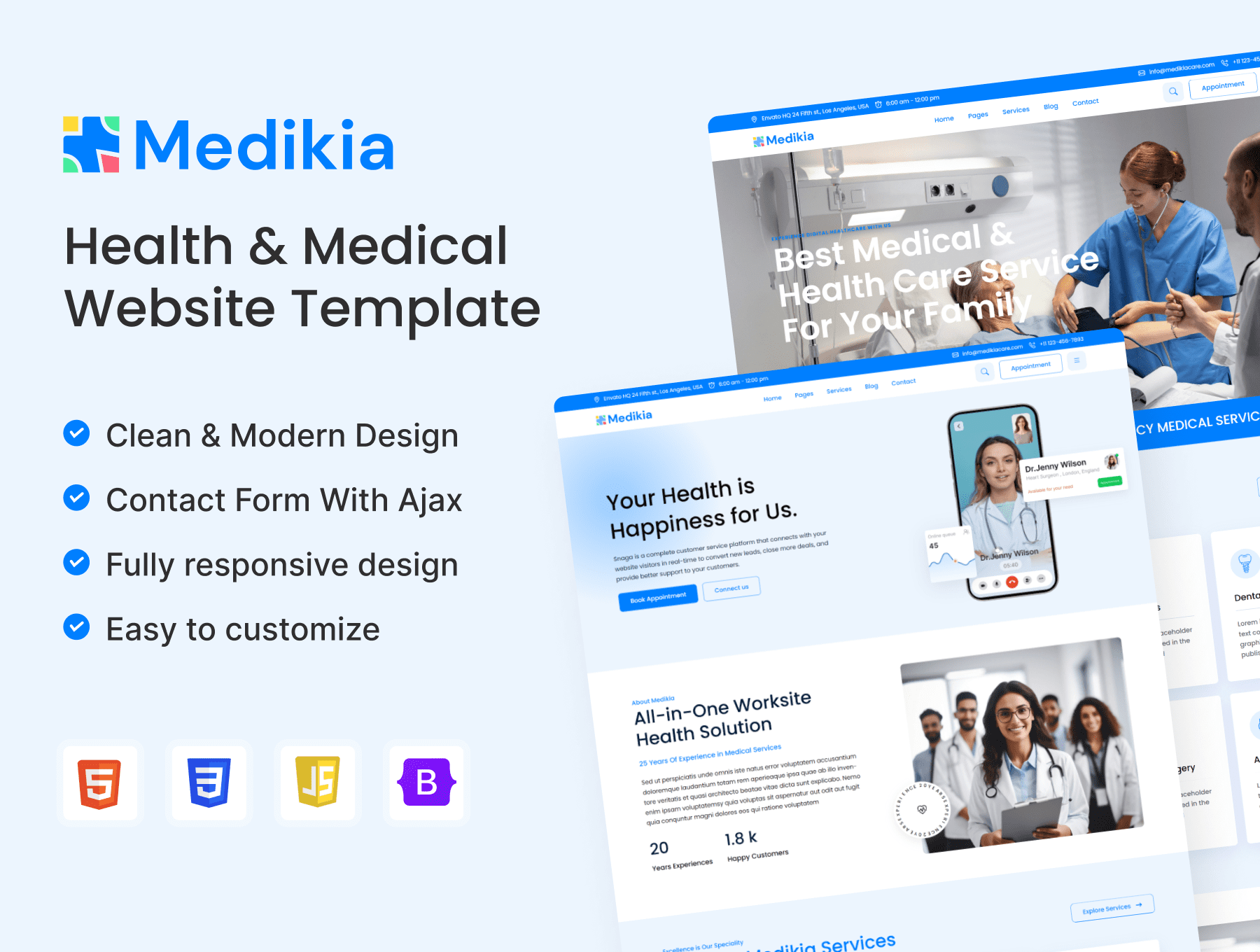 Medikia HTML Template offers seamless customization, making it exceptionally user-friendly. Packed with a plethora of features, Medikia empowers you to create a professionally polished website with an appealing design, effectively showcasing every aspect of your medical clinic. Take advantage of Medikia’s robust functionalities to craft detailed doctor schedules and effortlessly share information about your laboratory, hospital, or clinic.